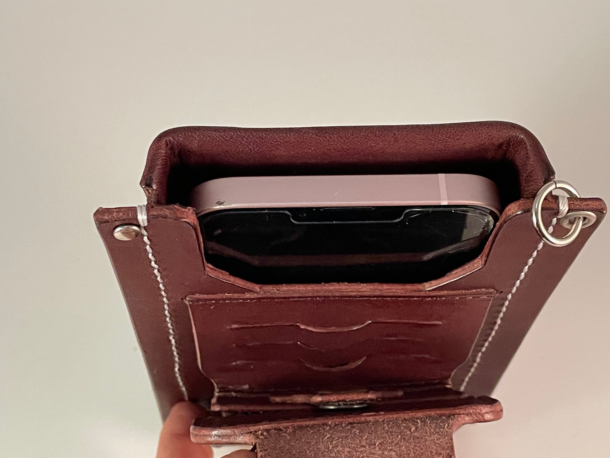 《iPhoneレギュラーサイズがピッタリ入る想定です》